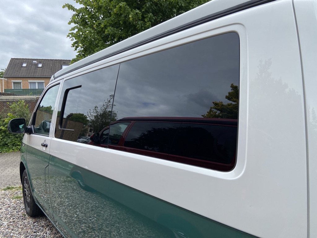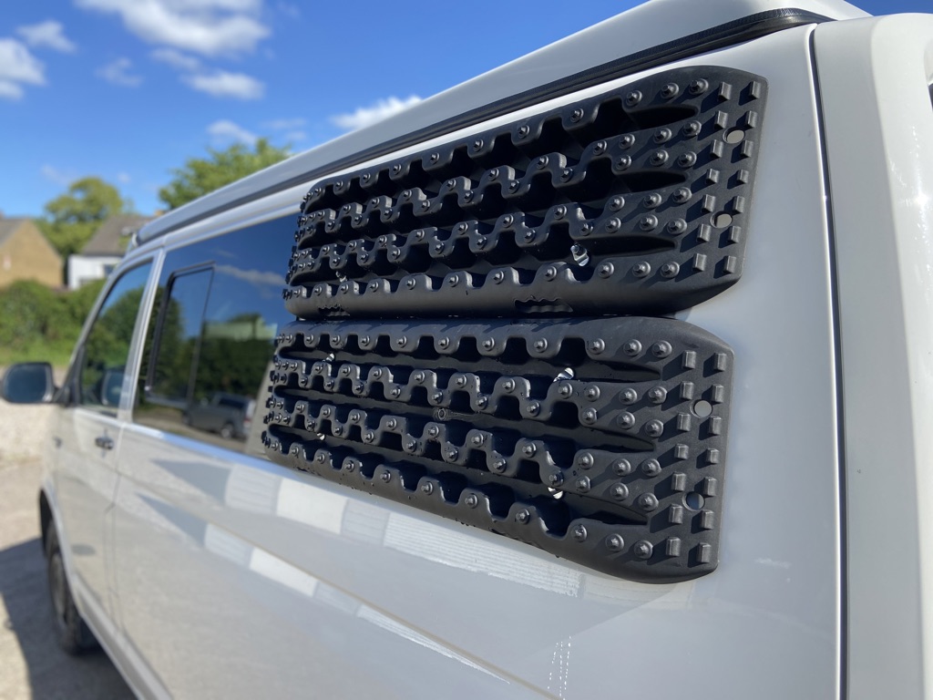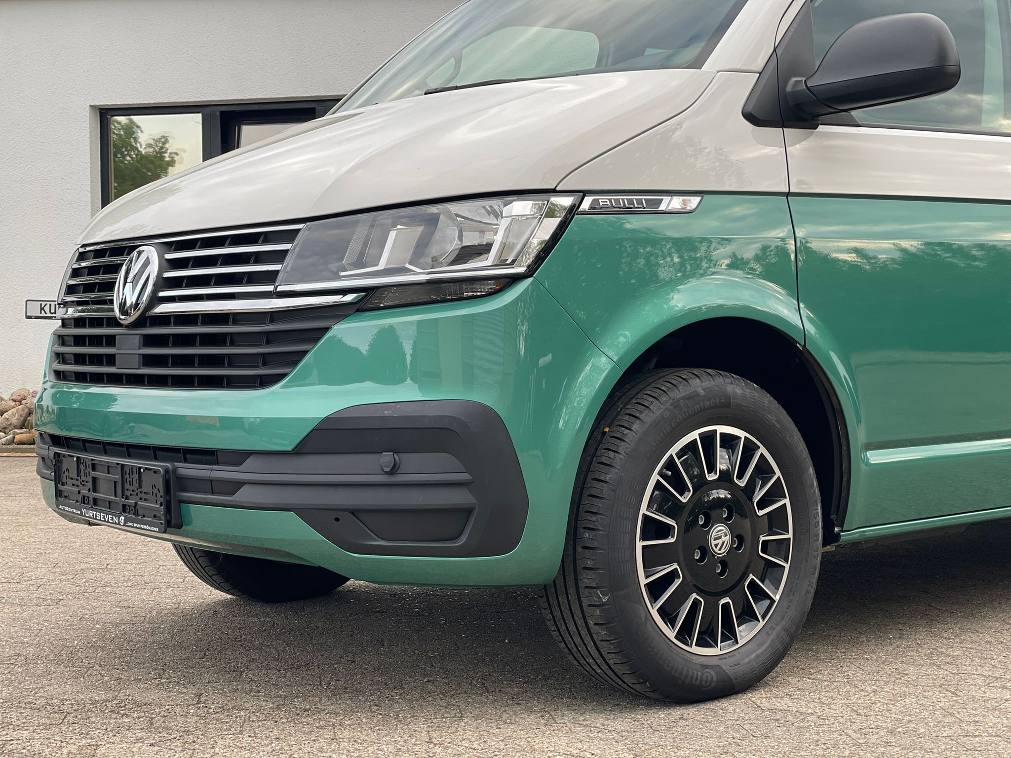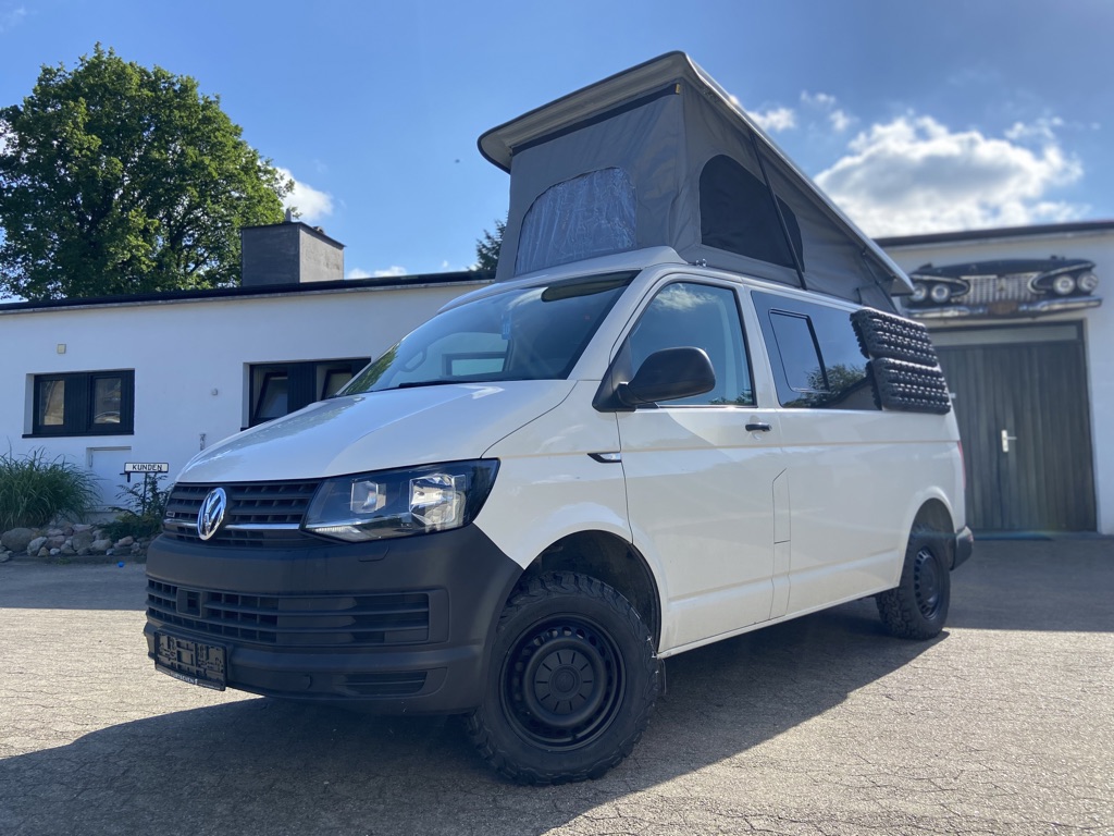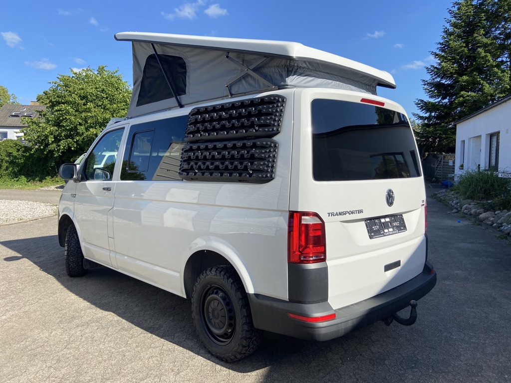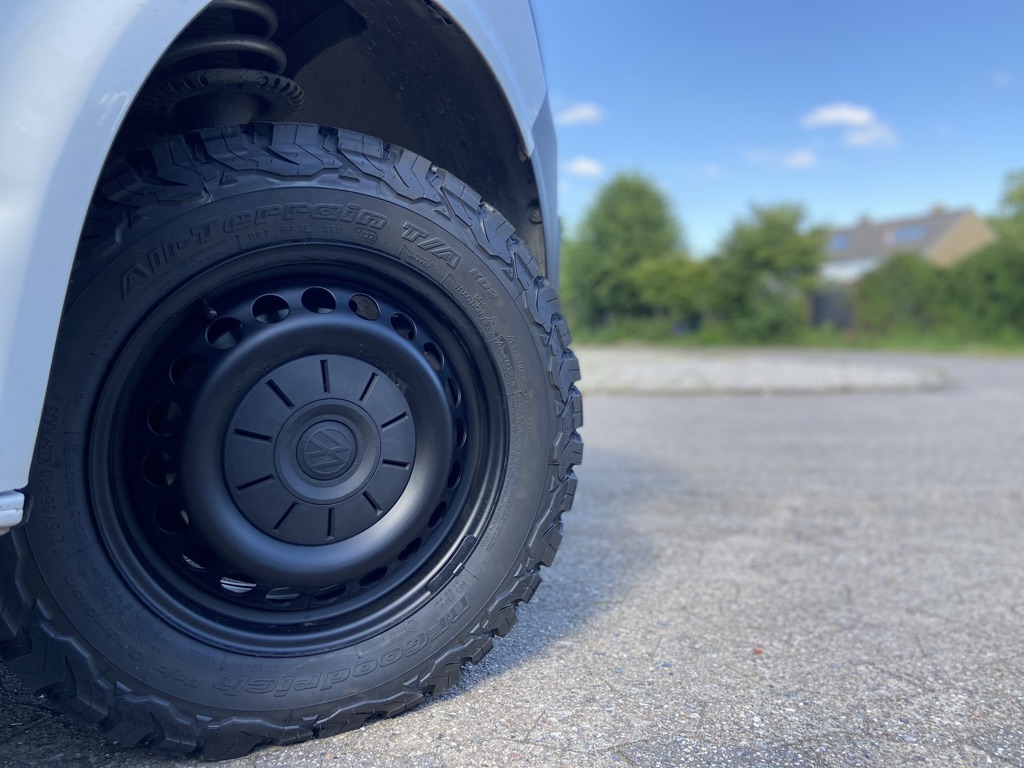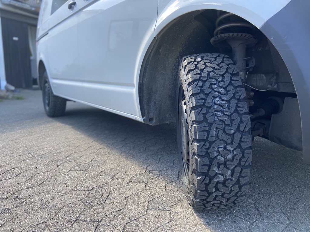 Ein Bulli angetrieben mit 150PS und 4Motion mit AT (AllTerrain)-Reifen, verstaubare Sandbleche als Anfahrhilfe und 30mm Höherlegung von „Eibach“.