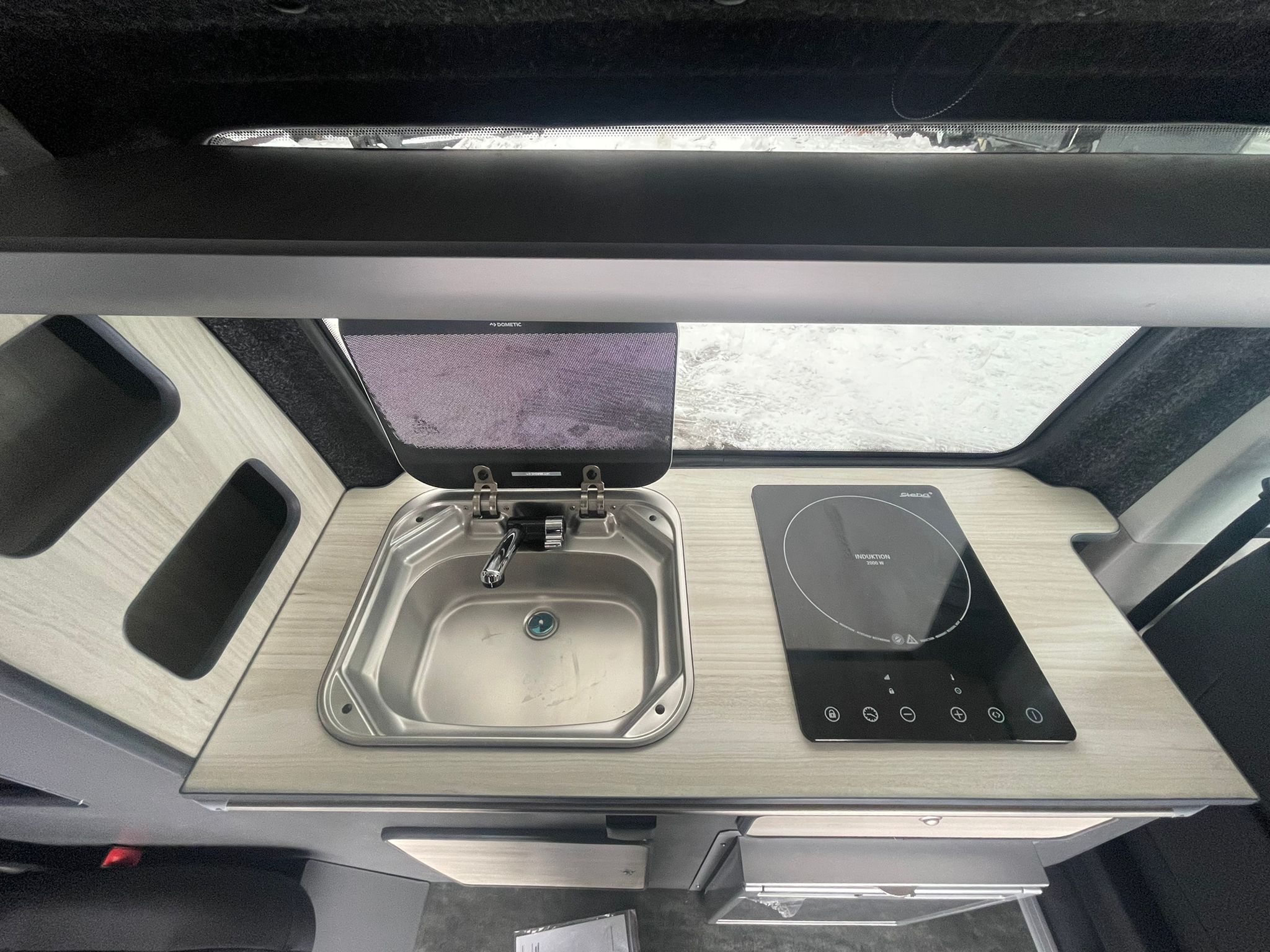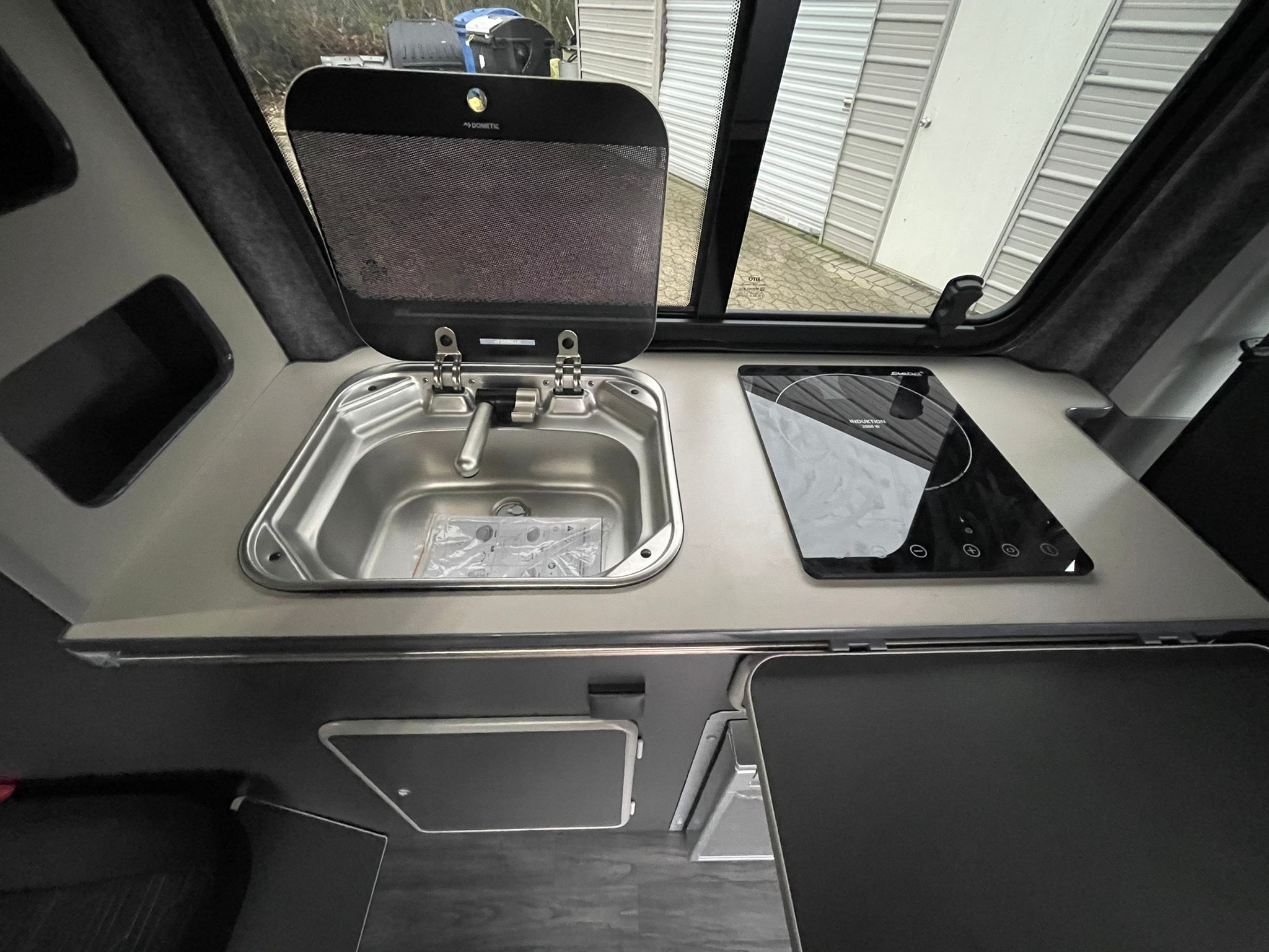 Unsere Küchenzeilen, bestehend aus Dometic Kompressor Kühlschrank, Spüle (mit zwei Wassertanks) und Induktionskochfeld, sind nicht nur qualitativ hochwertig, sondern auch sehr effizient, sicher in der Verwendung und einfach zu handhaben.