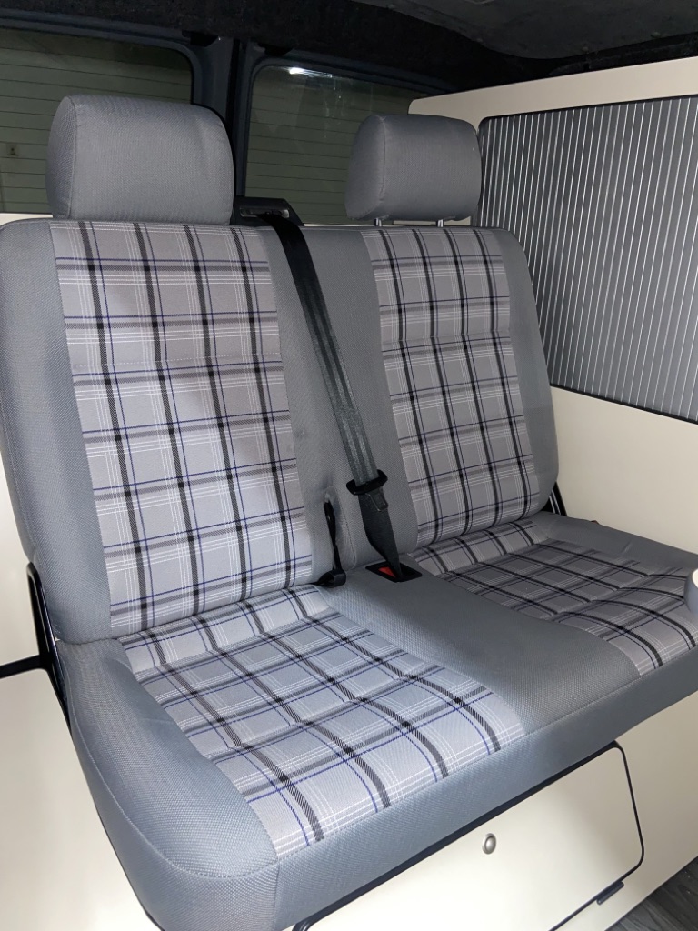 Sie können bei den Sitzen auswählen zwischen Doppelsitzbank und Einzelsitz und beides jeweils mit oder ohne Drehkonsole. Die TÜV Abnahme und das Gutachten erhalten Sie inklusive.